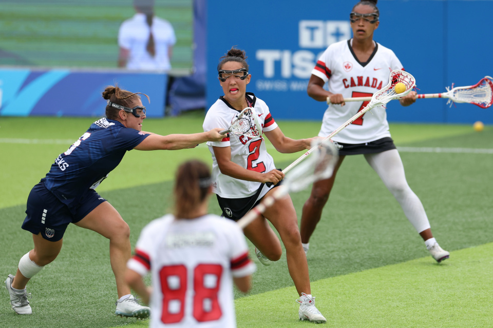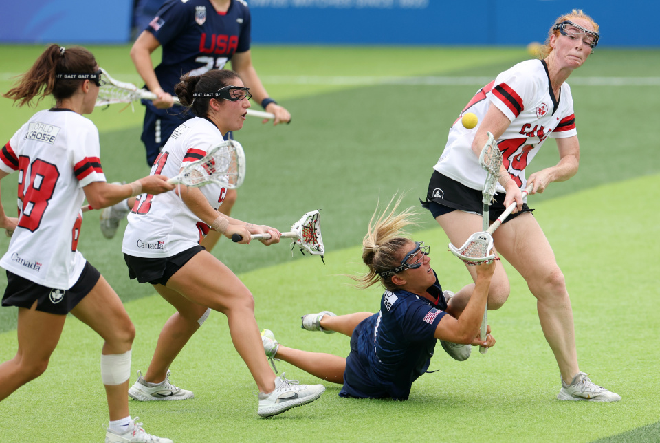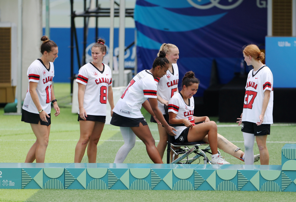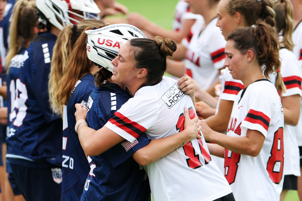 当日,在四川省成都七中东部学校田径场举行的2025年成都世运会女子棍网球金牌赛中,美国队16比8战胜加拿大队,夺得金牌。8月11日,美国队球员与加拿大队球员赛后拥抱。新华社记者 陈斌 摄